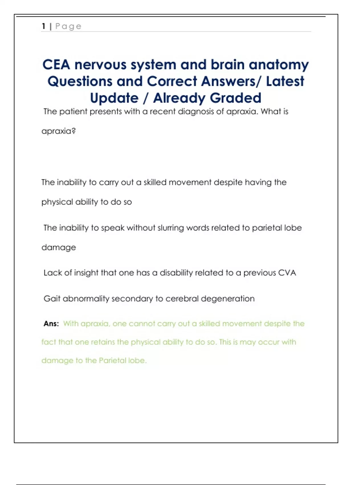 Ans: With apraxia, one cannot carry out a skilled movement despite the
