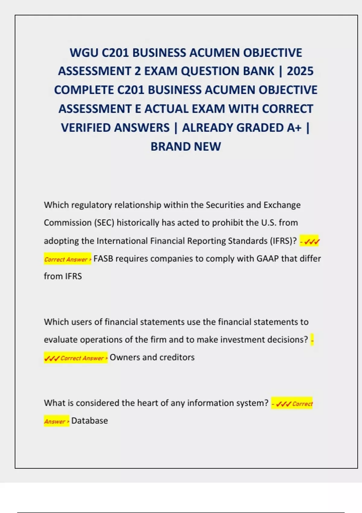 COMPLETE C201 BUSINESS ACUMEN OBJECTIVE