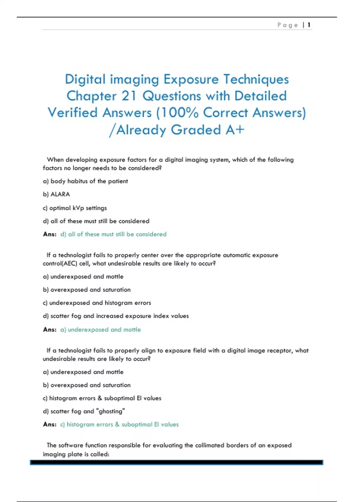 Digital imaging Exposure Techniques Chapter 21 Questions with Detailed Verified Answers (100% Correct Answers) /Already Graded A+