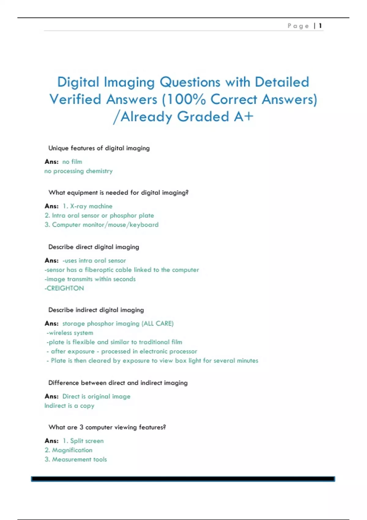 Digital Imaging Questions with Detailed Verified Answers (100% Correct Answers) /Already Graded A+