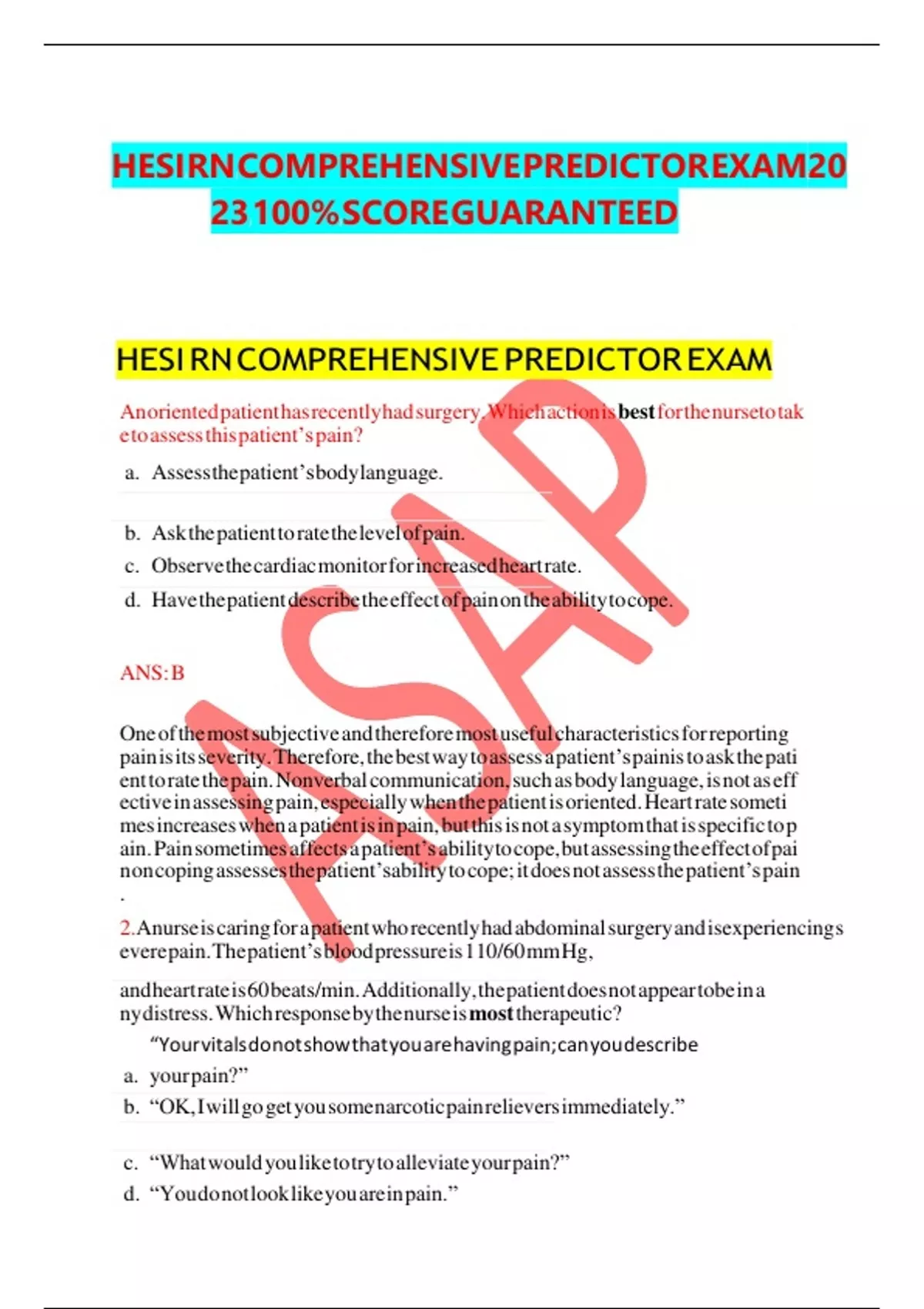 HESI RN COMPREHENSIVE PREDICTOR EXAM j j j j