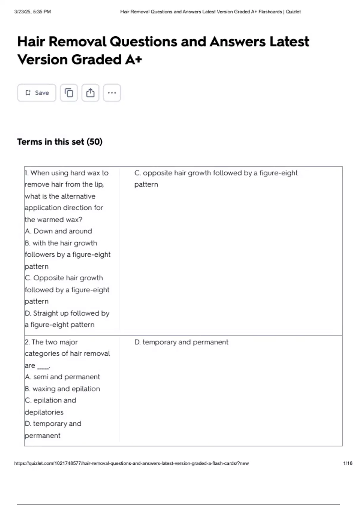 https://quizlet.com/1021748577/hair-removal-questions-and-answers-latest-version-graded-a-flash-cards/?new 3/16