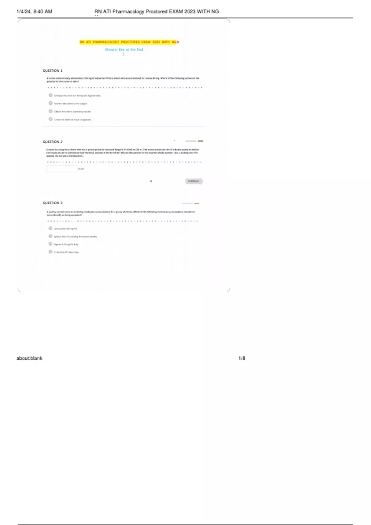 , 1/4/24,k8:40kAM RNkATIkPharmacologykProctoredkEXAMk2023kWITHkNG
