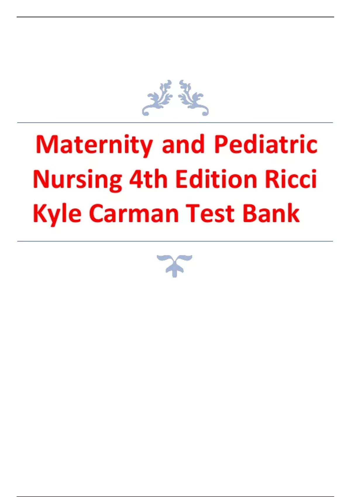 Test Bank - for Maternity and Pediatric Nursing 4th Edition by Susan Ricci,