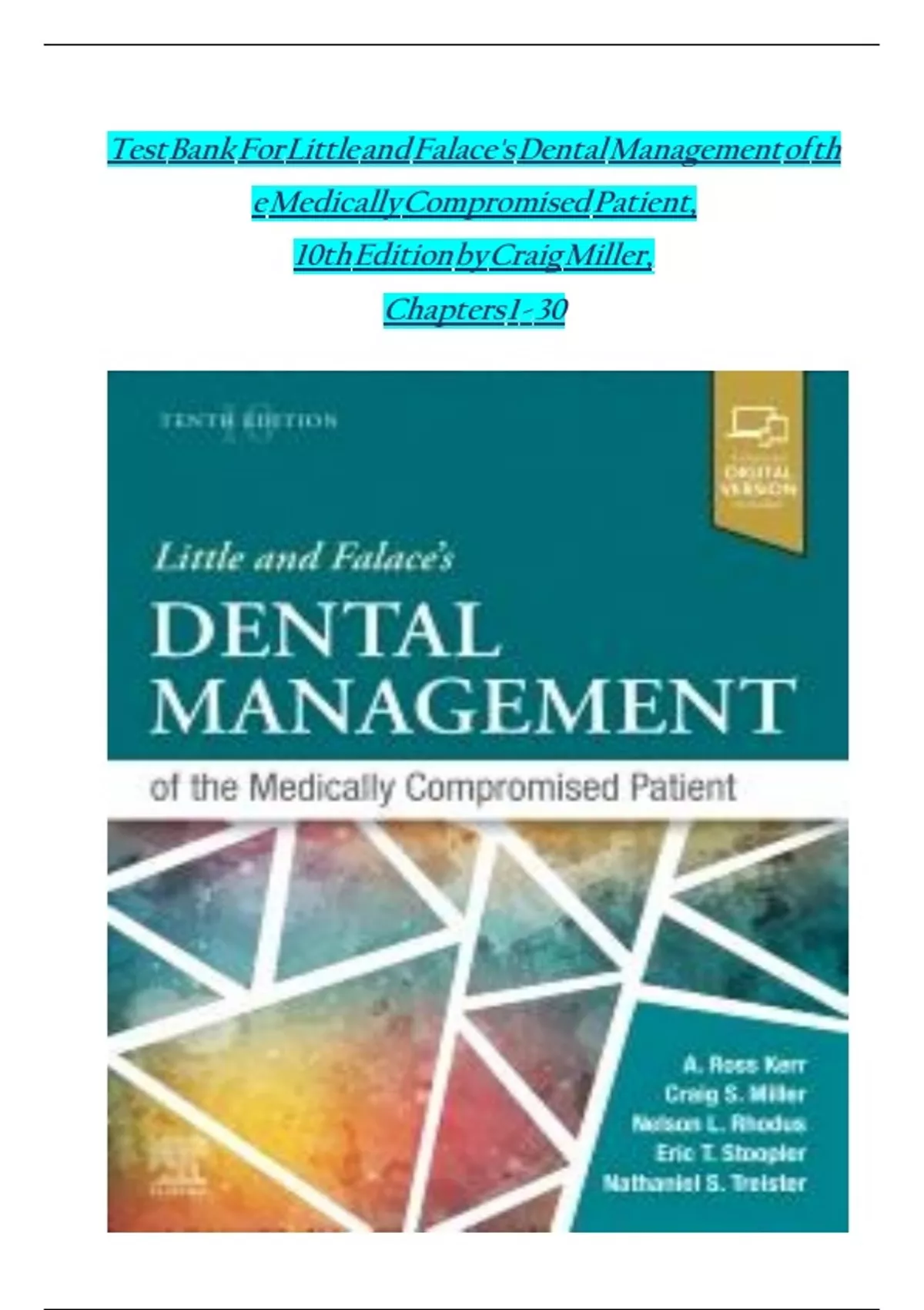 Test Bank For Little and Falace's Dental Management of th
