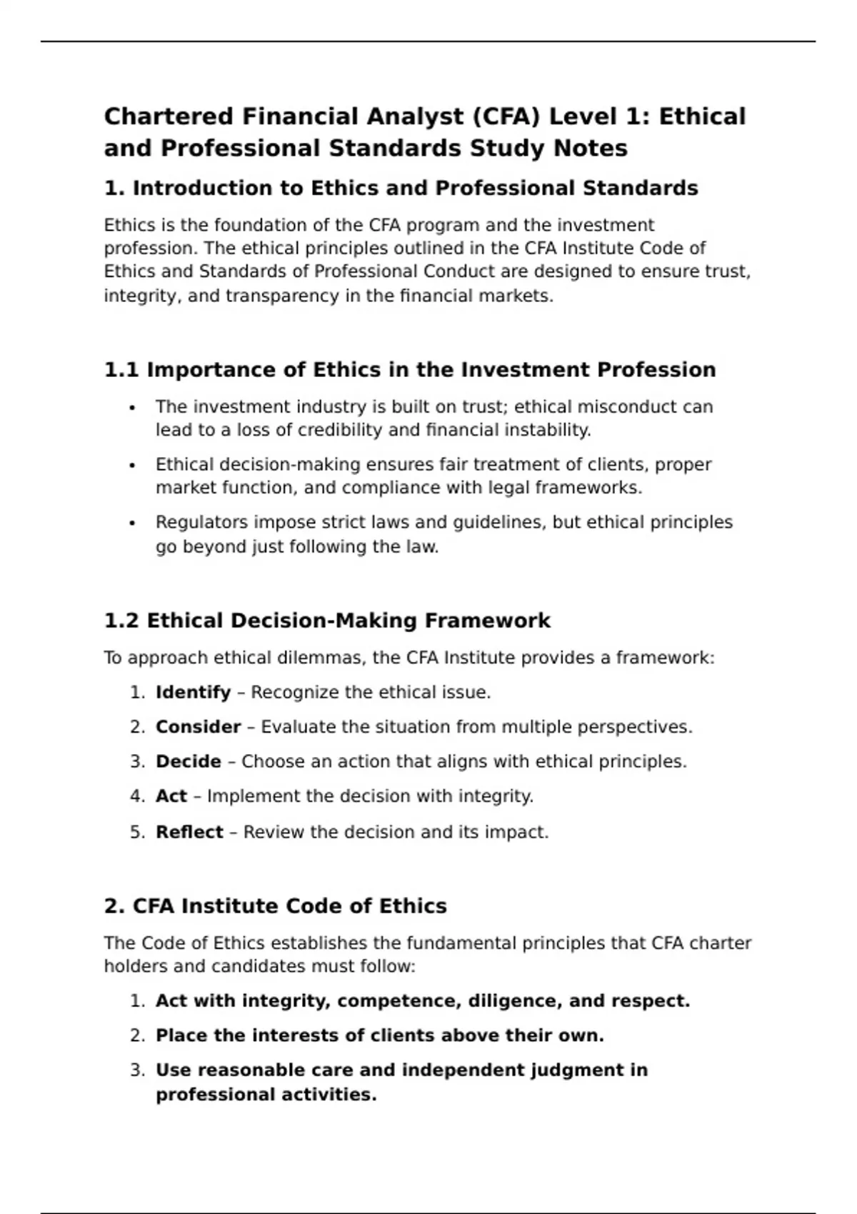 To approach ethical dilemmas, the CFA Institute provides a framework: