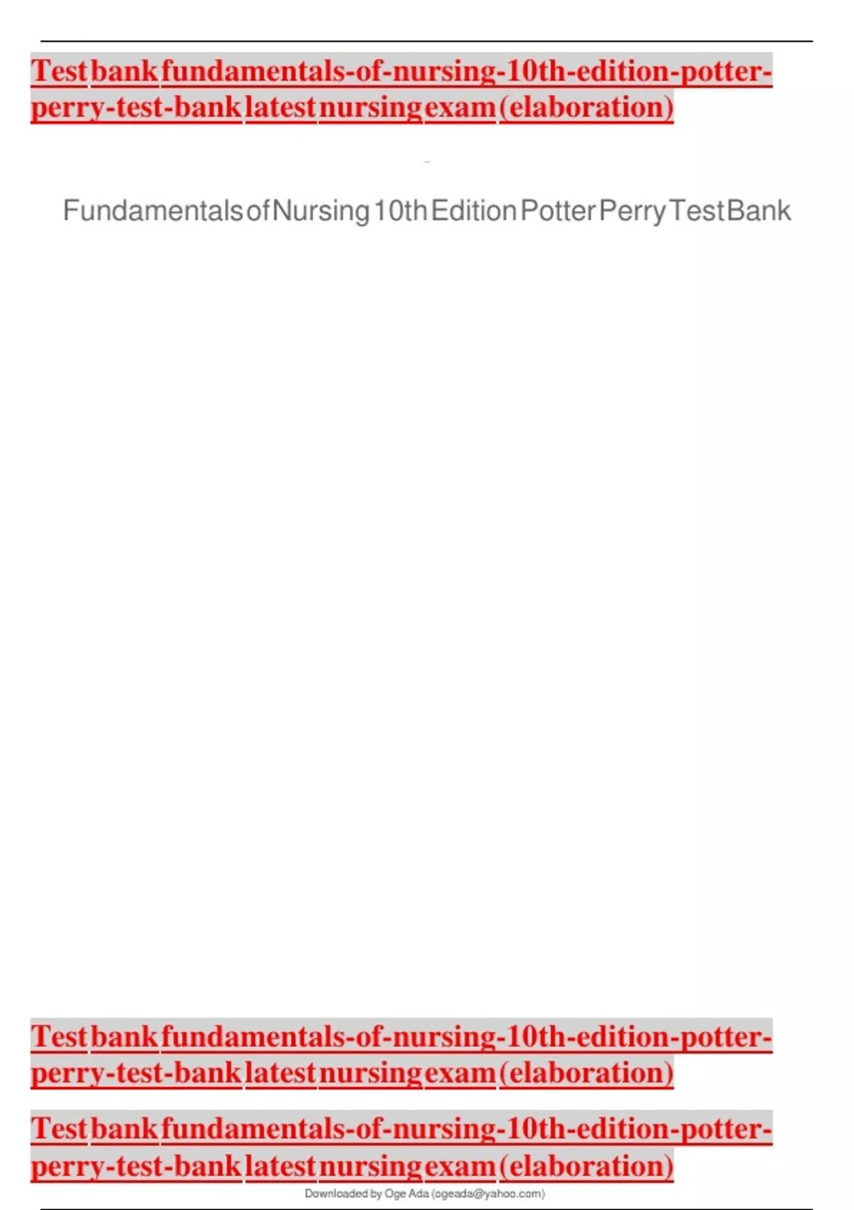 Test bank fundamentals-of-nursing-10th-edition-potter-
