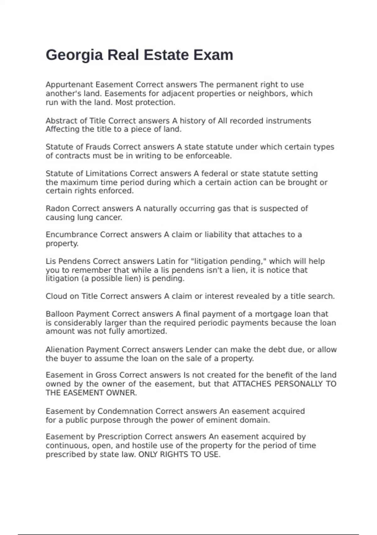 Easement by Condemnation Correct answers An easement acquired