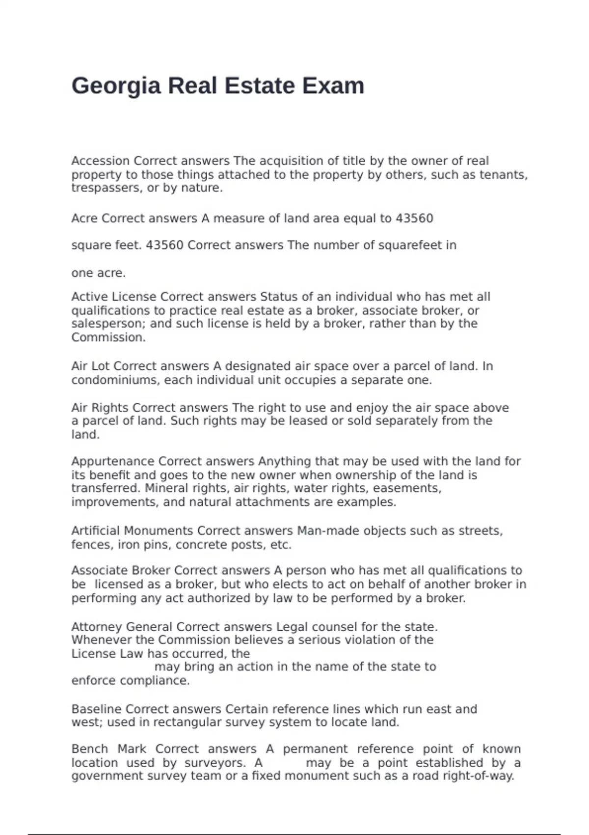 Accession Correct answers The acquisition of title by the owner of real