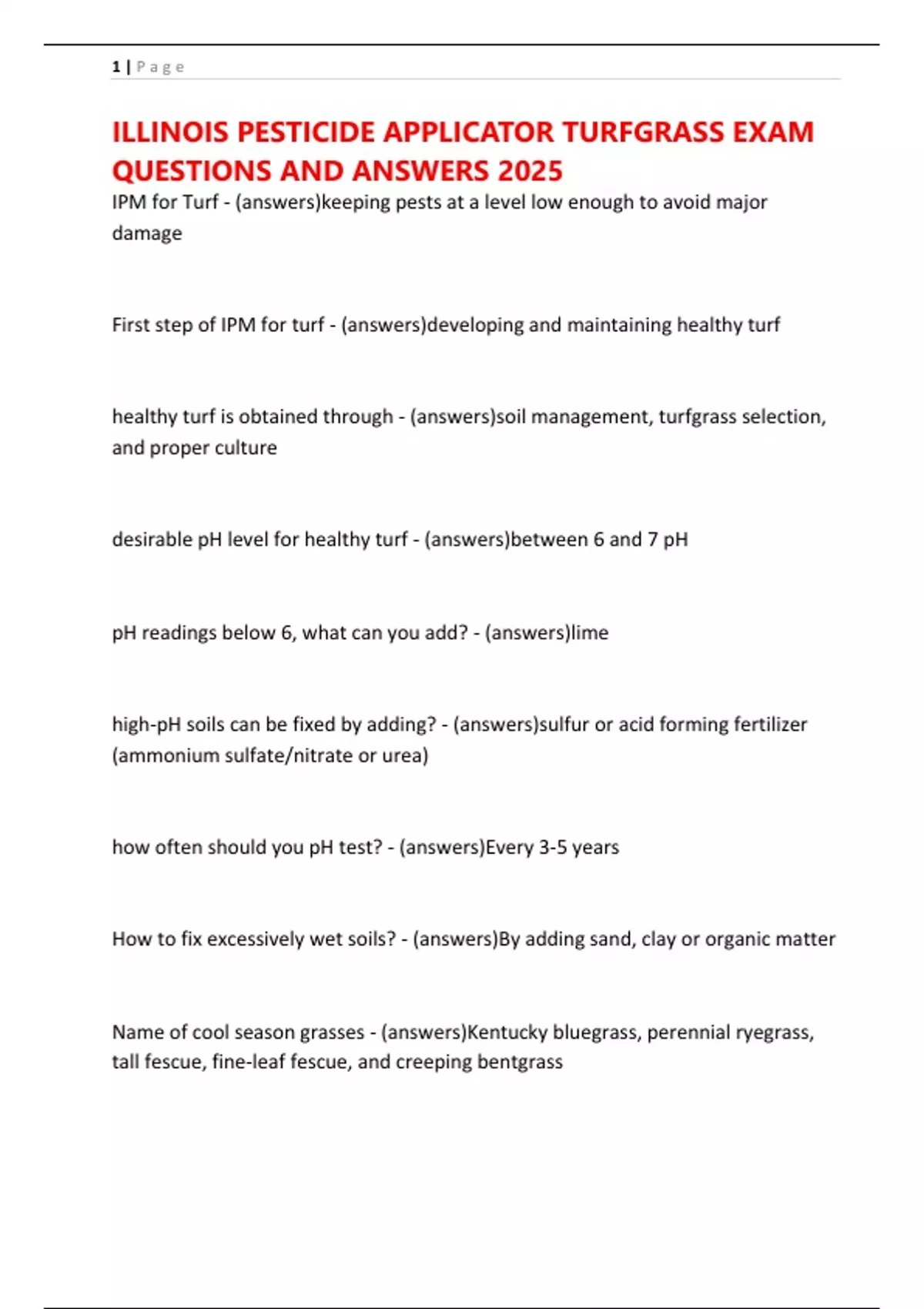 ILLINOIS PESTICIDE APPLICATOR TURFGRASS EXAM