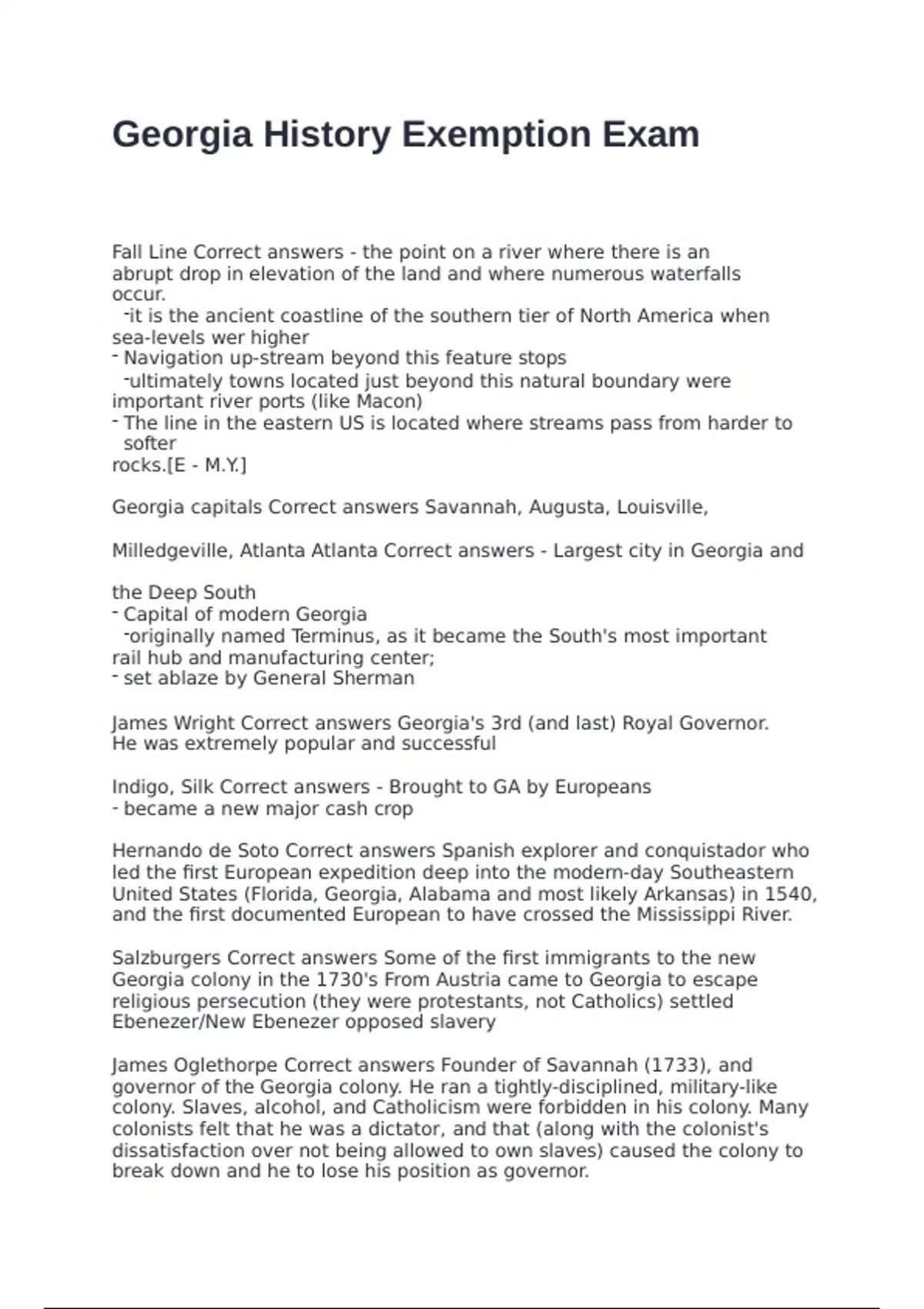 Georgia capitals Correct answers Savannah, Augusta, Louisville,