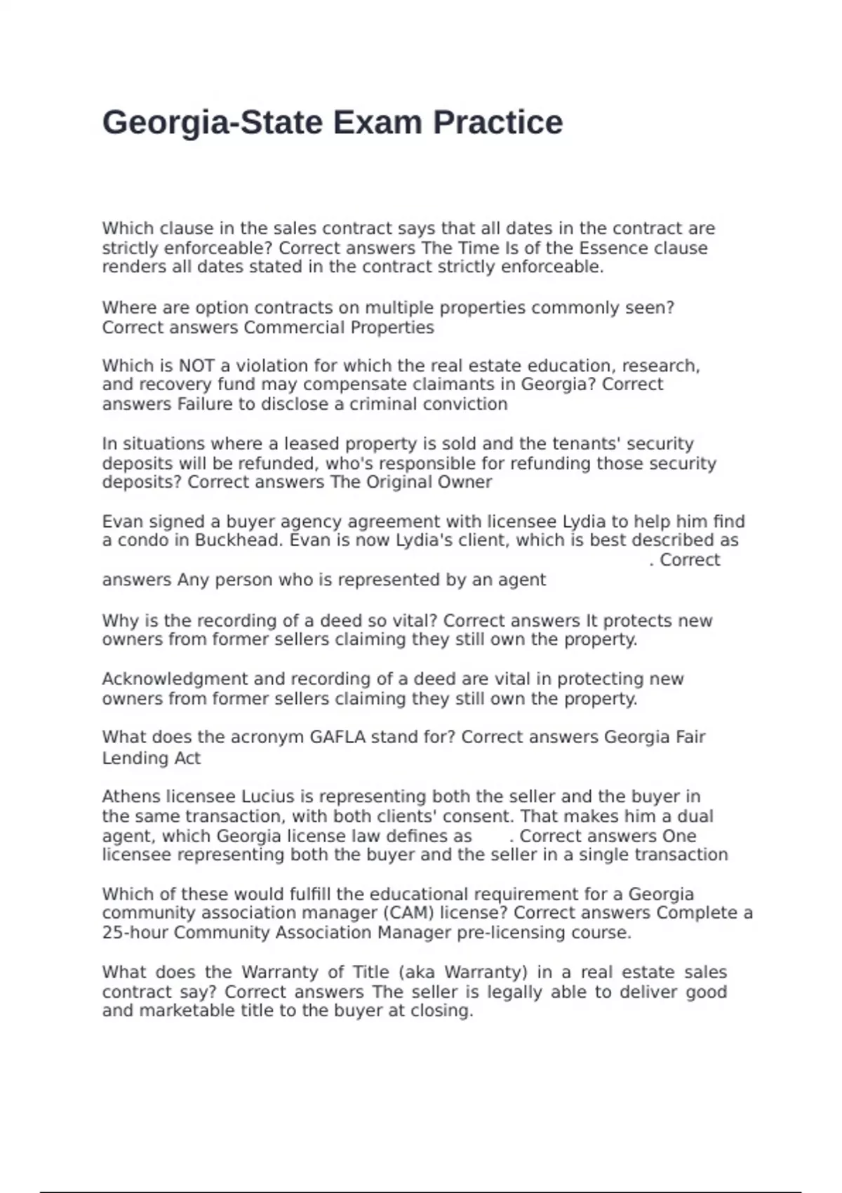 strictly enforceable? Correct answers The Time Is of the Essence clause