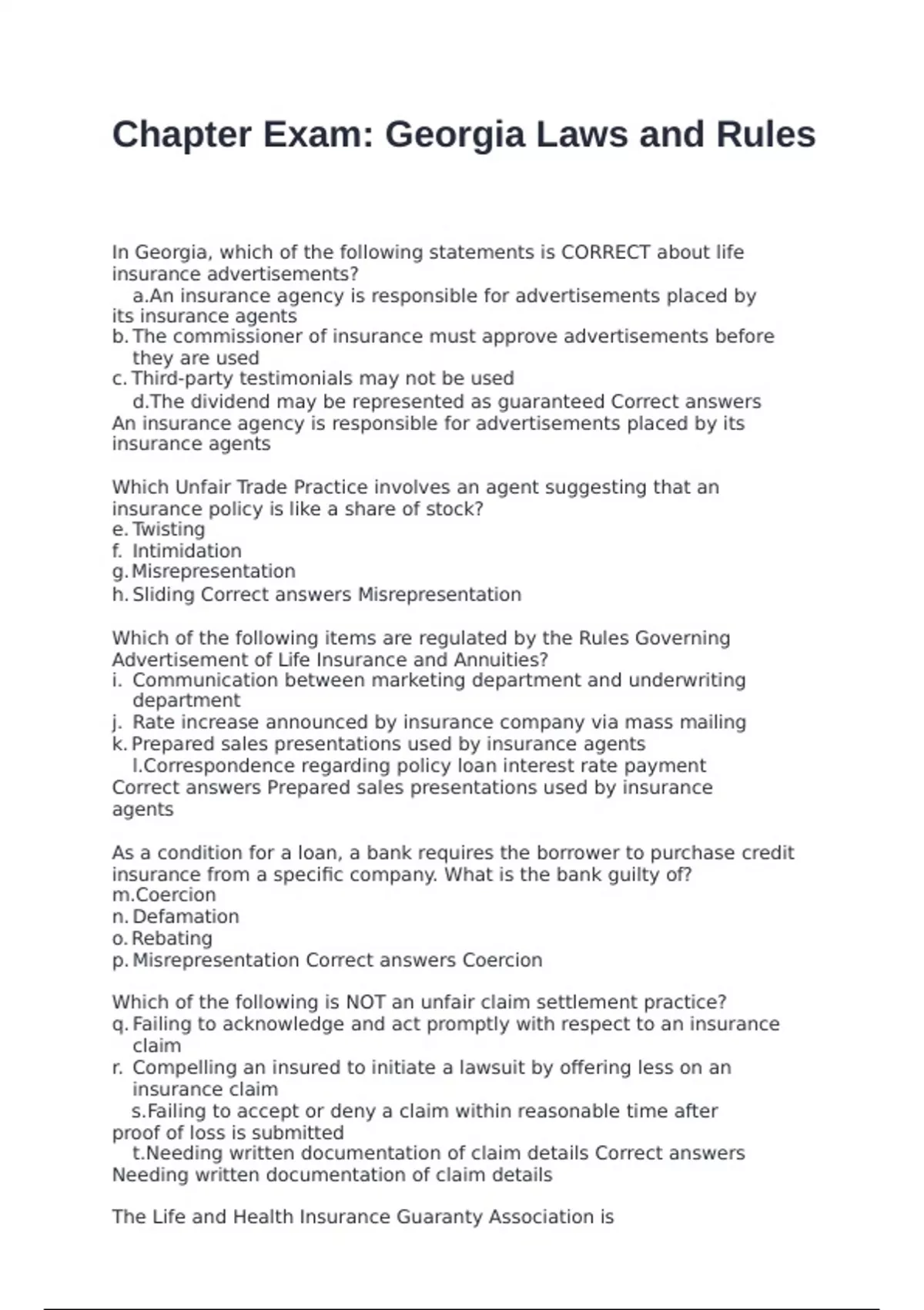 t.Misrepresent the provisions of an insurance policy Correct answers