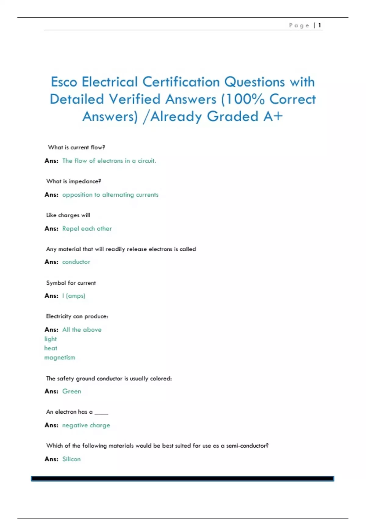 Esco Electrical Certification Questions with Detailed Verified Answers (100% Correct Answers) /Already Graded A+