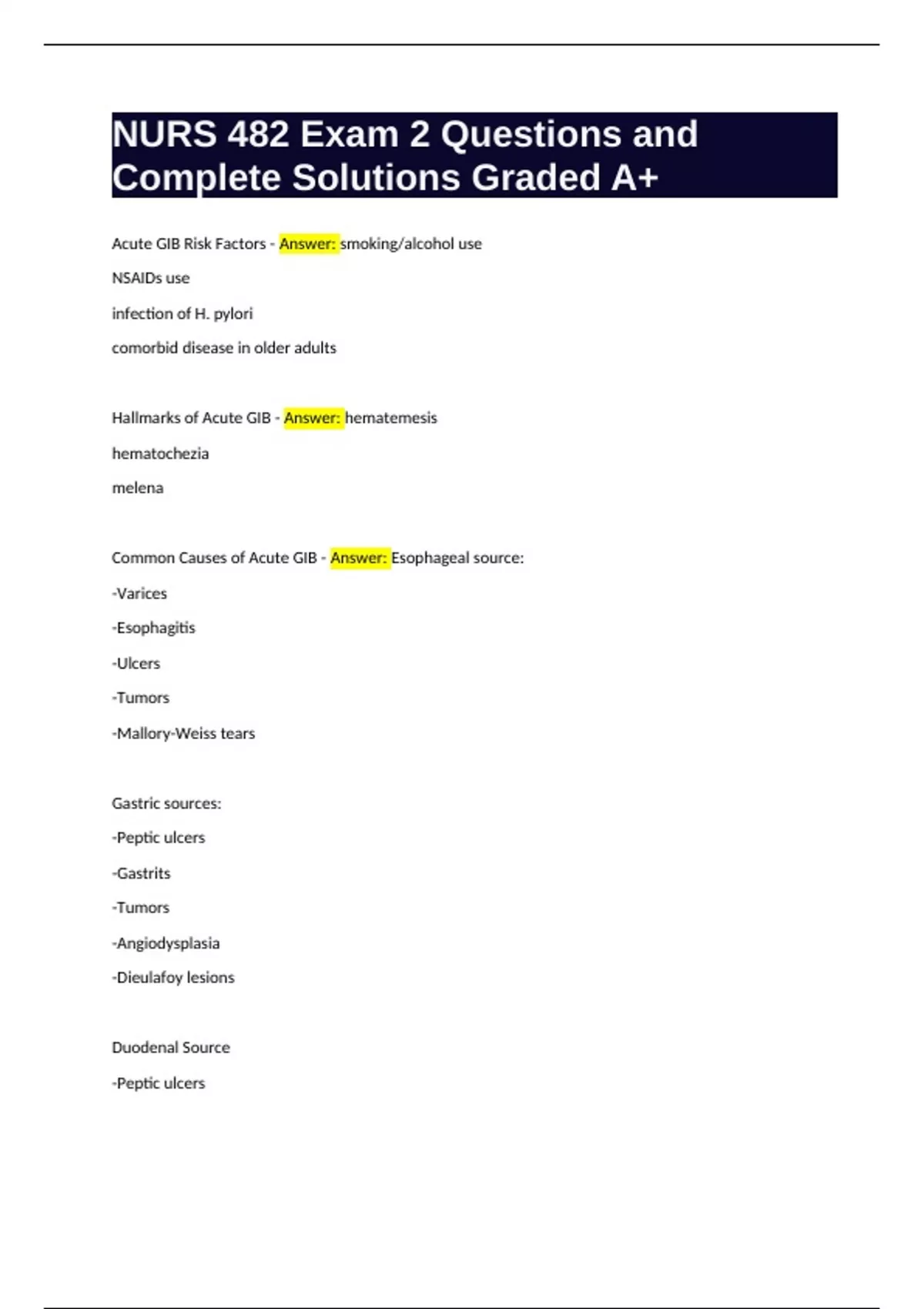 Acute GIB Nursing Interventions - Answer: -Maintain patent airway, elevate HOB, have suction available