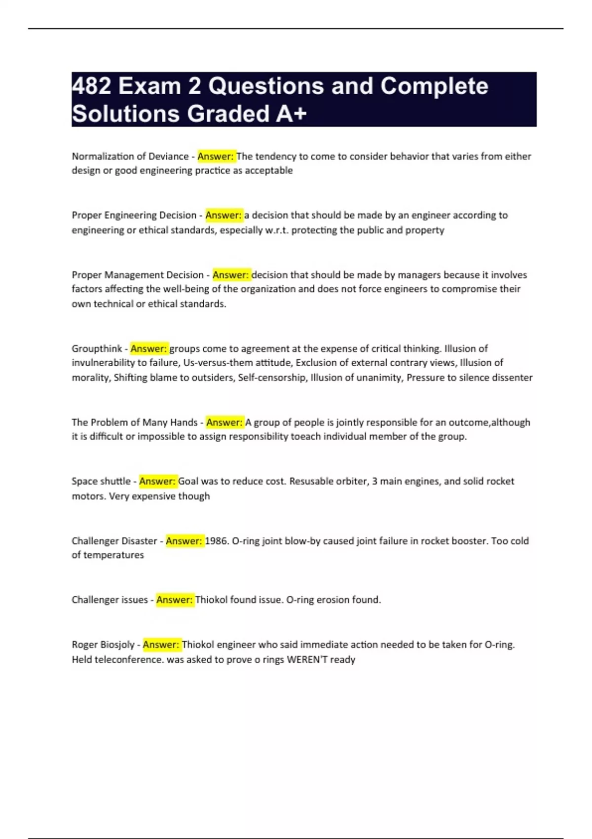 Challenger causes - Answer: Normalization of deviance (problems accepted), PMD made instead of PED,