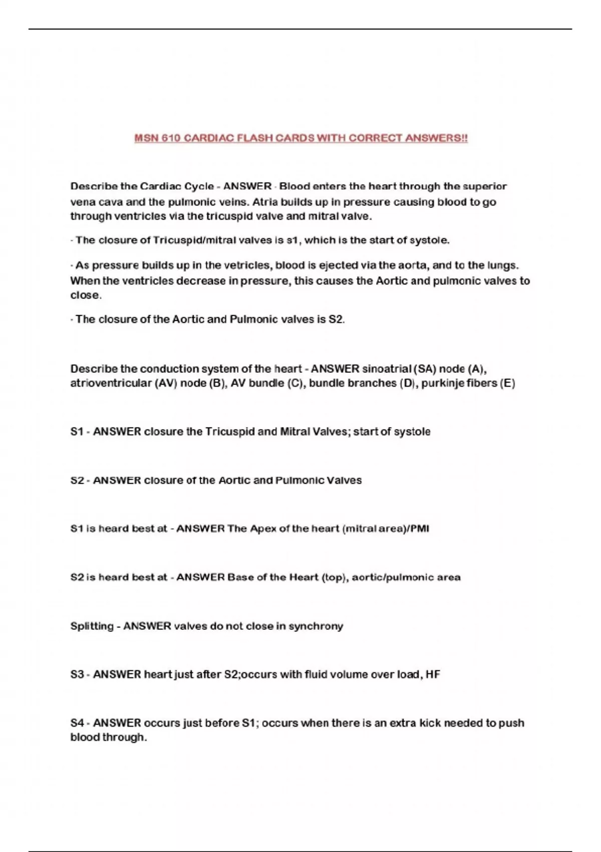 MSN 610 CARDIAC FLASH CARDS WITH CORRECT ANSWERS!!...