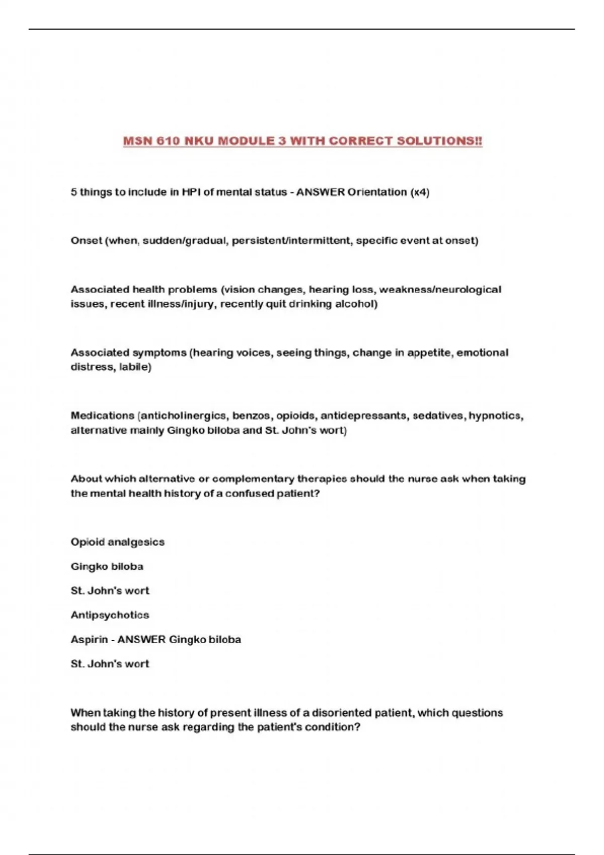 MSN 610 NKU MODULE 3 WITH CORRECT SOLUTIONS!!