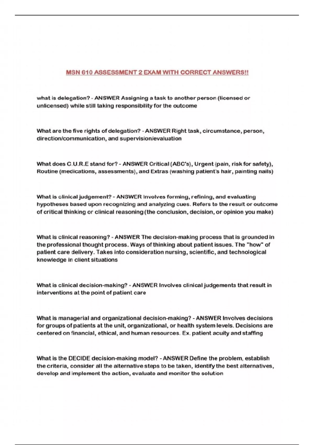 MSN 610 ASSESSMENT 2 EXAM WITH CORRECT ANSWERS!!...