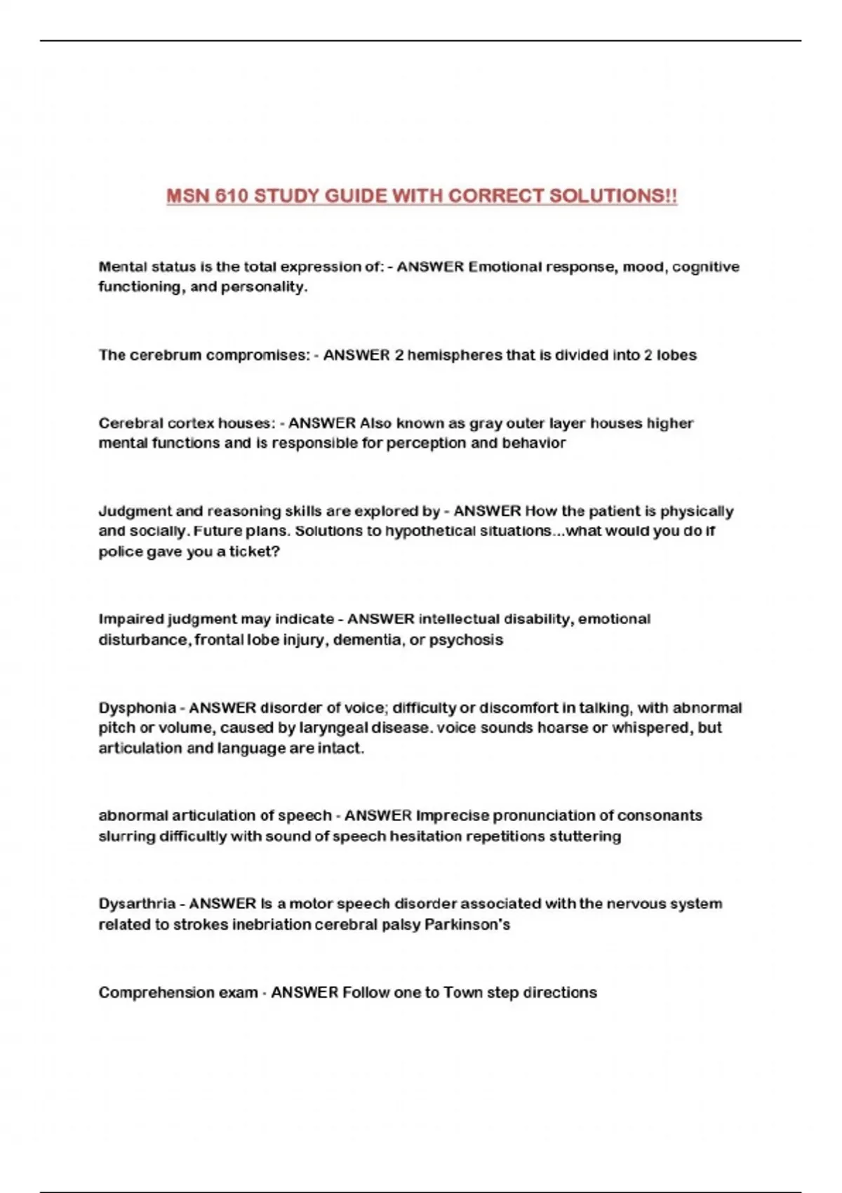 MSN 610 STUDY GUIDE WITH CORRECT SOLUTIONS!!...