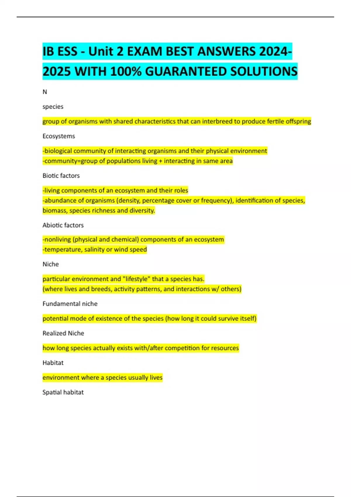IB ESS - Unit 2 EXAM BEST ANSWERS 2024 2025 WITH 100% GUARANTEED SOLUTIONS