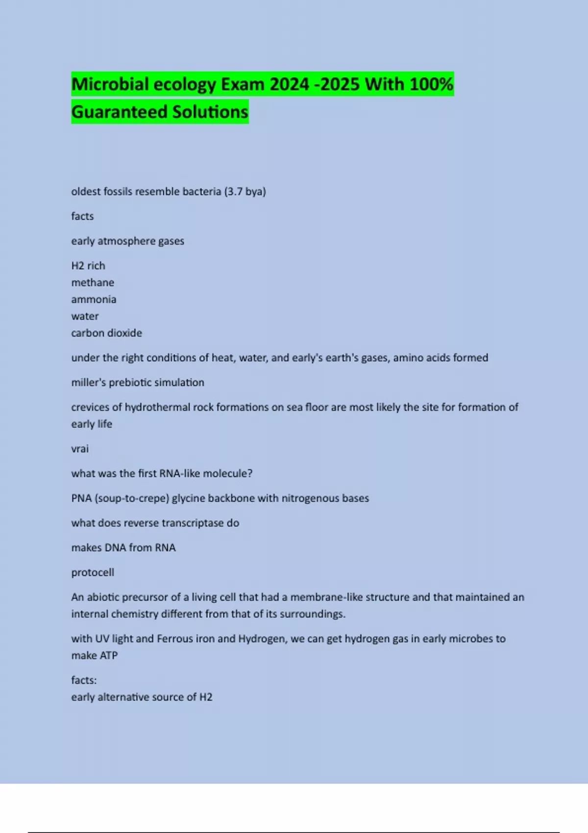 Microbial ecology Exam 2024 -2025 With 100%