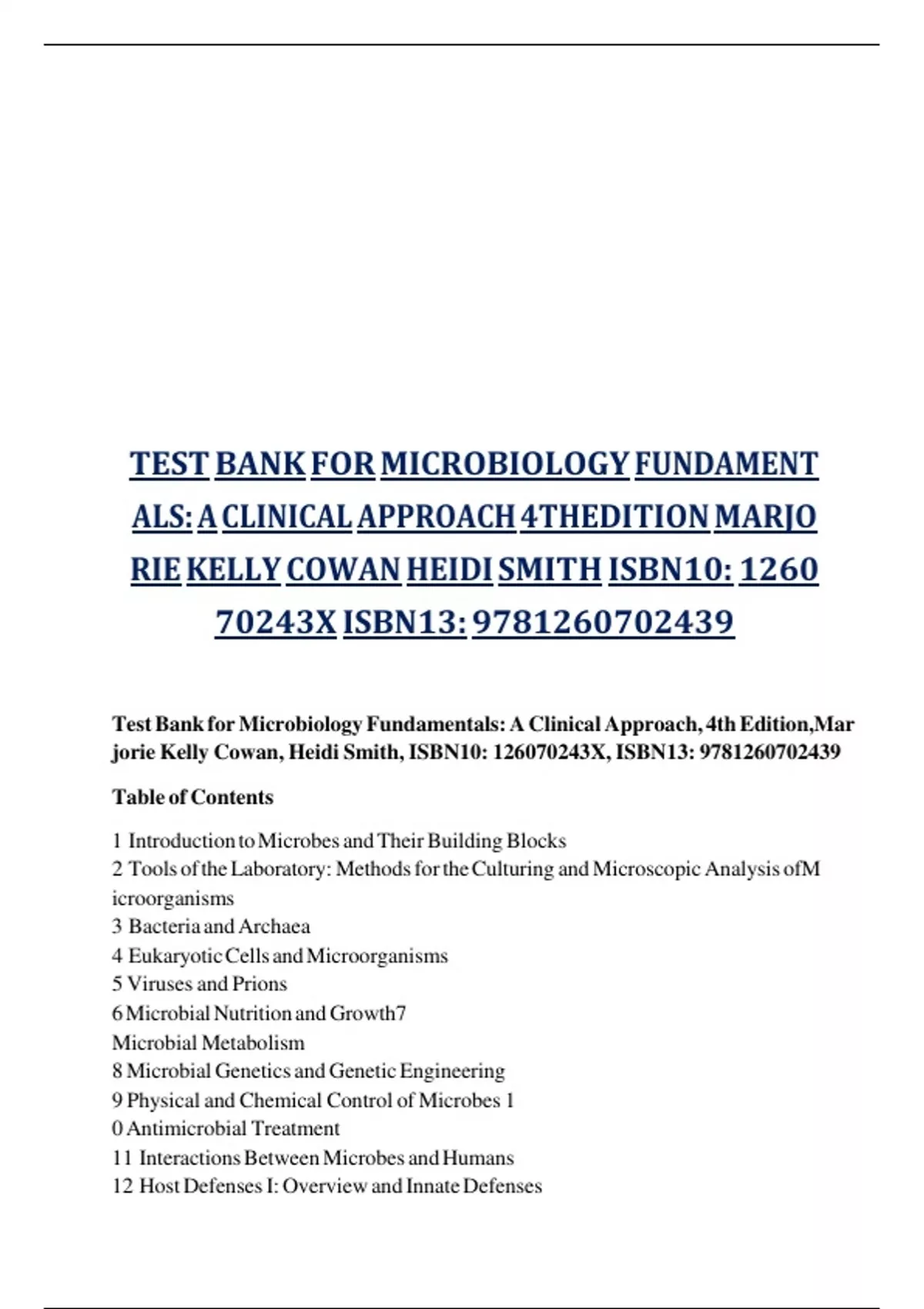 Test Bank for Microbiology Fundamentals: A Clinical Approach, 4th Edition,Mar