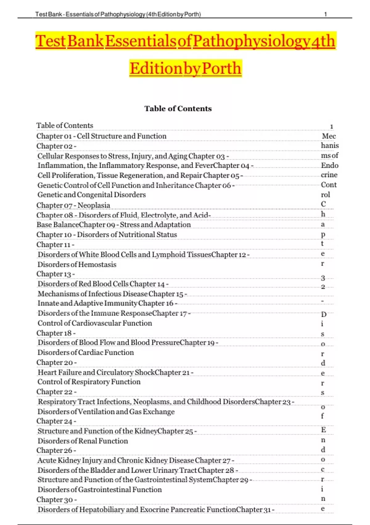 , TestjBankj-jEssentialsjofjPathophysiologyj(4thjEditionjbyjPorth) 4