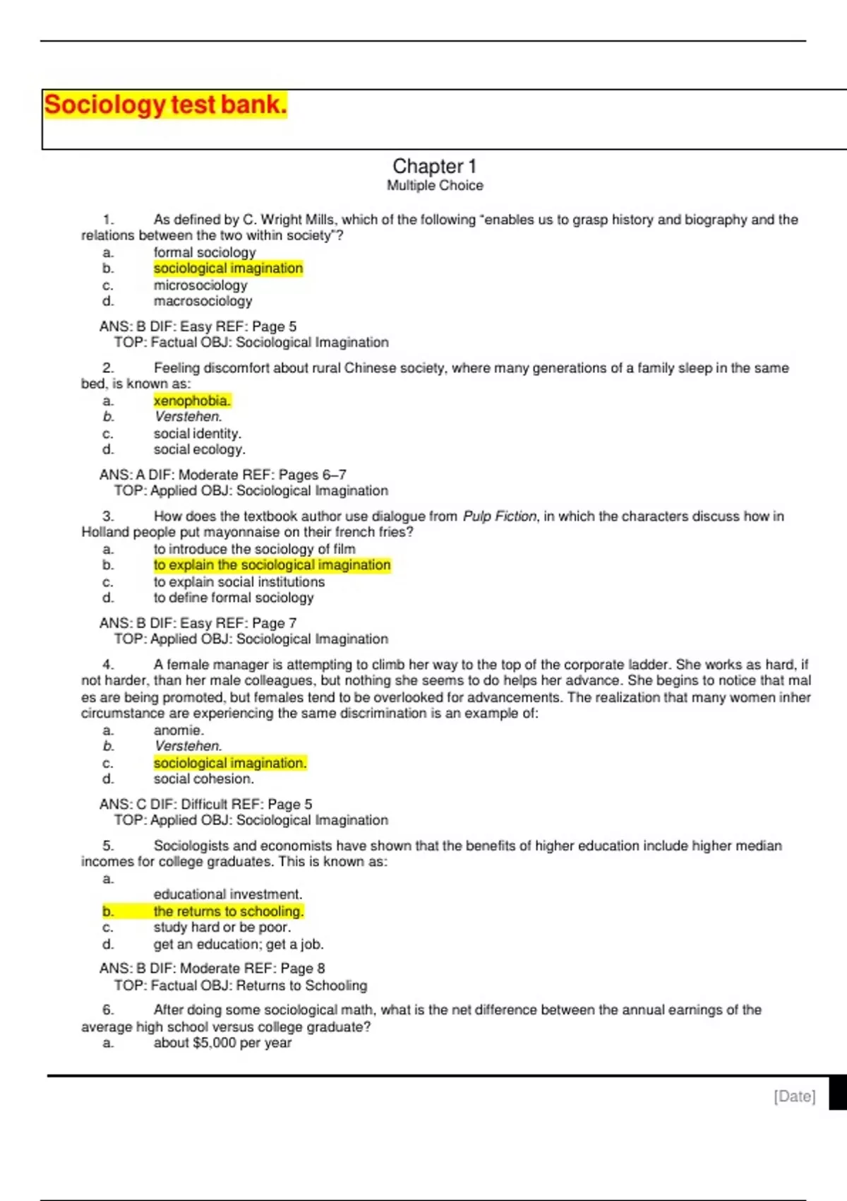 Sociology test bank.