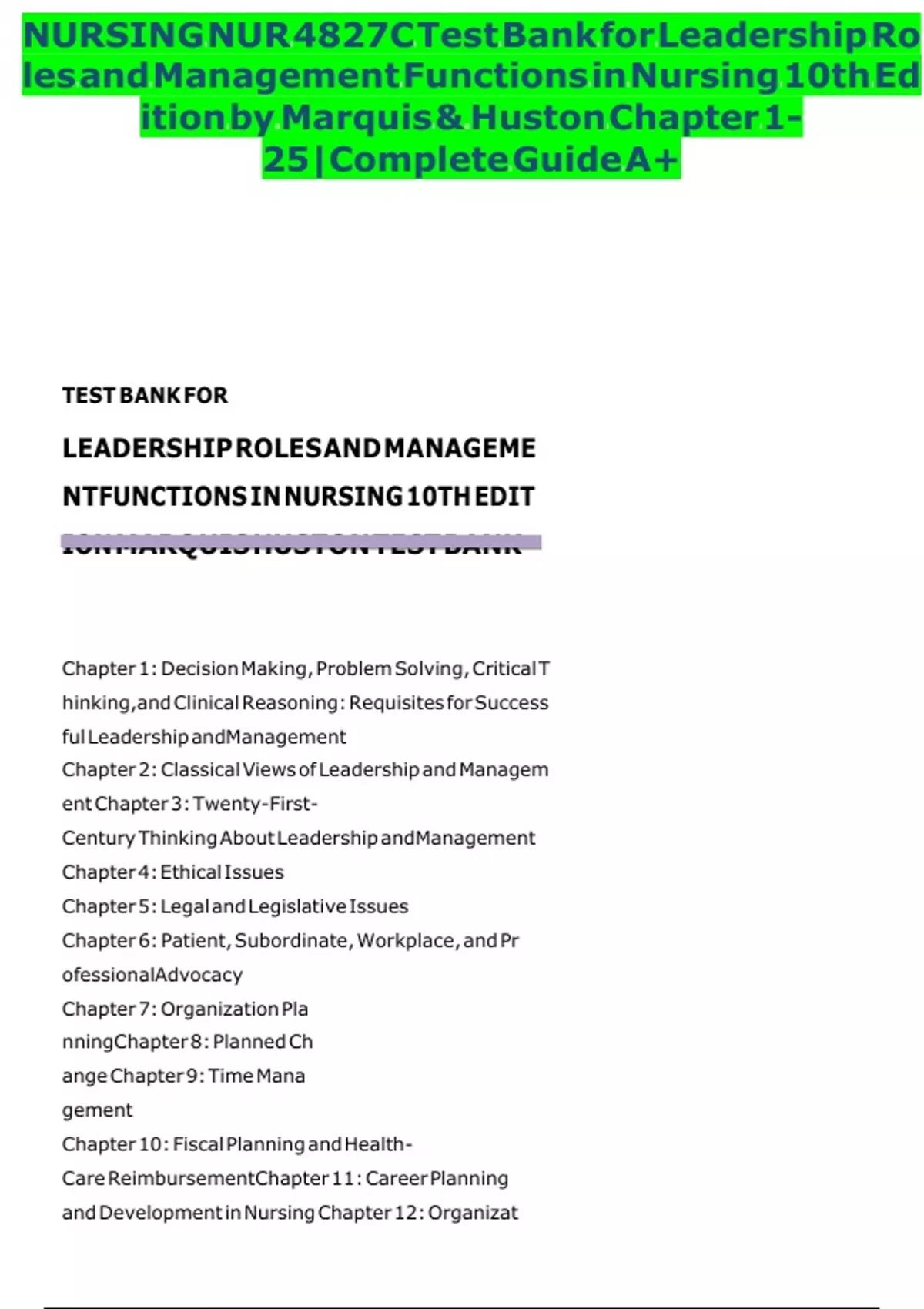 , NURSING NUR 4827C Test Bank for Leadership Ro