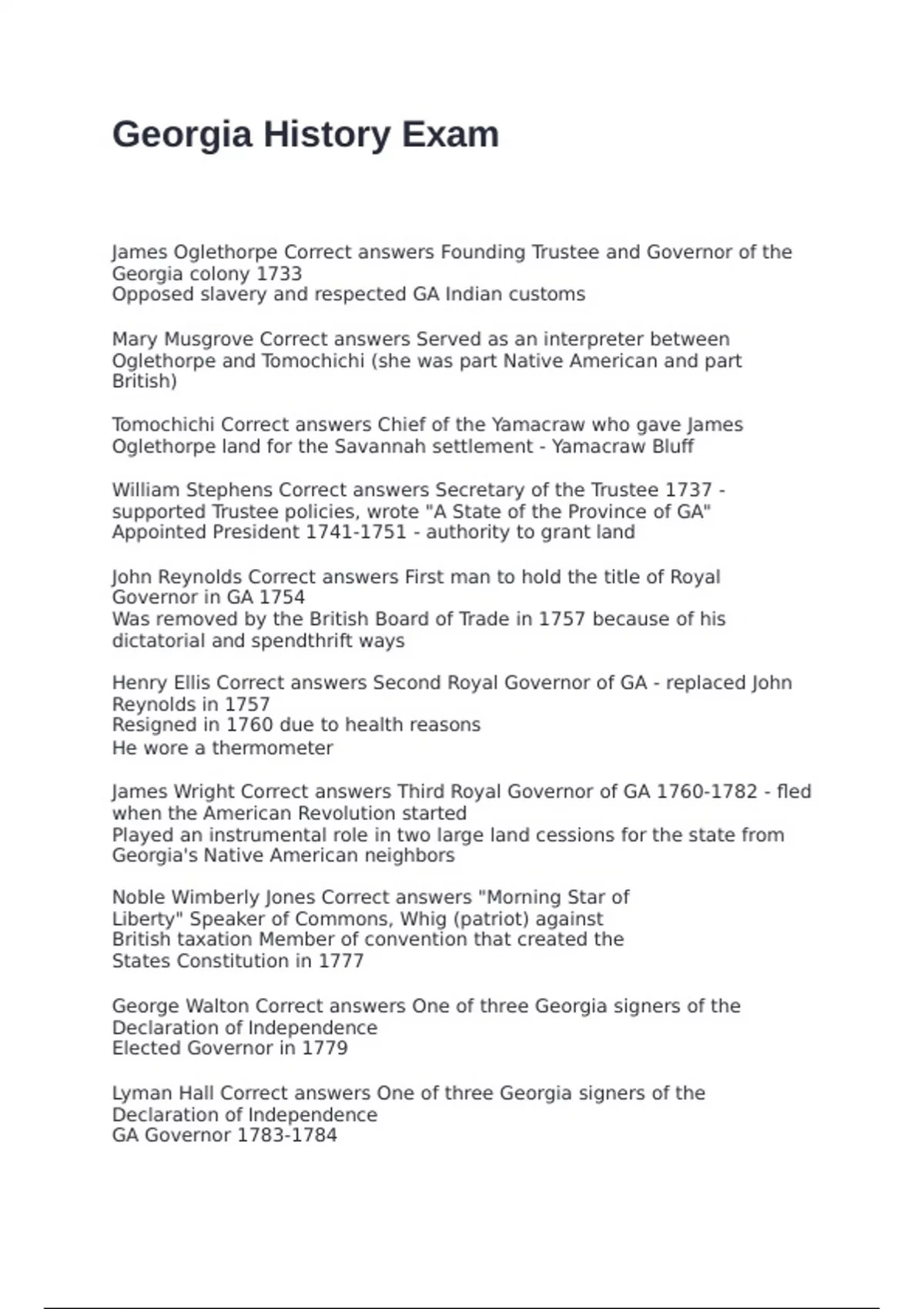 John Clarke Correct answers Captain in the GA Militia - fought in the