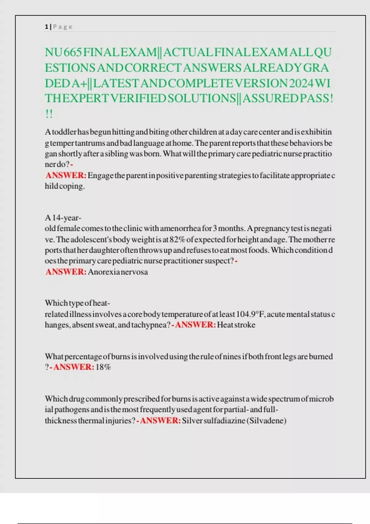 ESTIONS AND CORRECT ANSWERS ALREADY GRA l l l l l