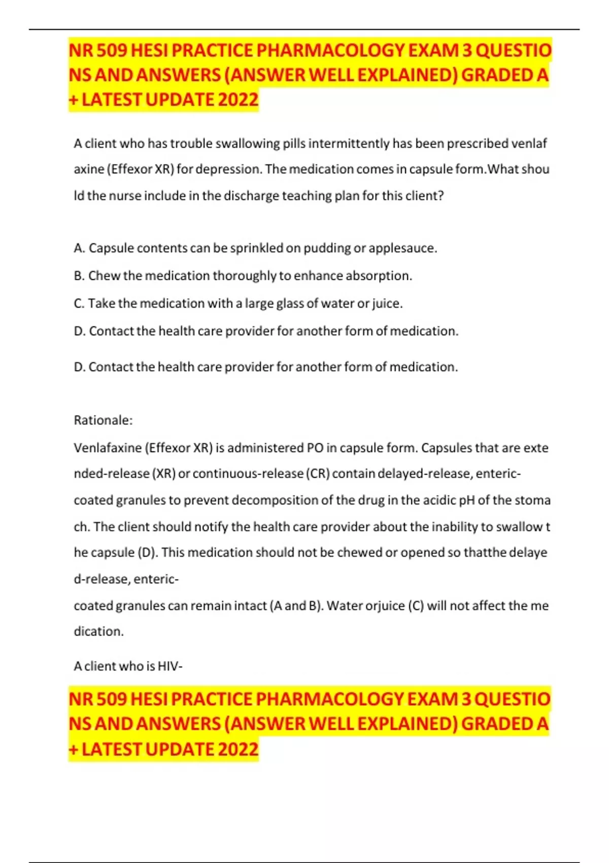 NR 509 HESI PRACTICE PHARMACOLOGY EXAM 3 QUESTIO