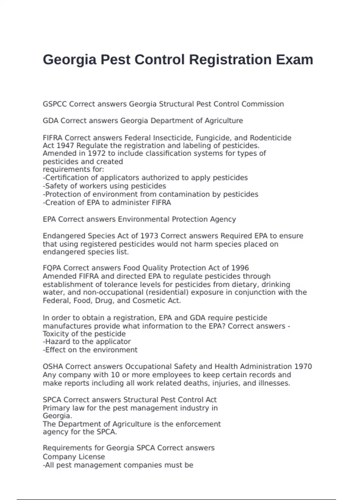 GSPCC Correct answers Georgia Structural Pest Control Commission