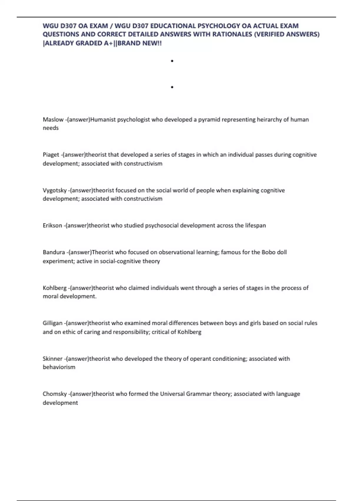 , WGU D307 OA EXAM / WGU D307 EDUCATIONAL PSYCHOLOGY OA ACTUAL EXAM