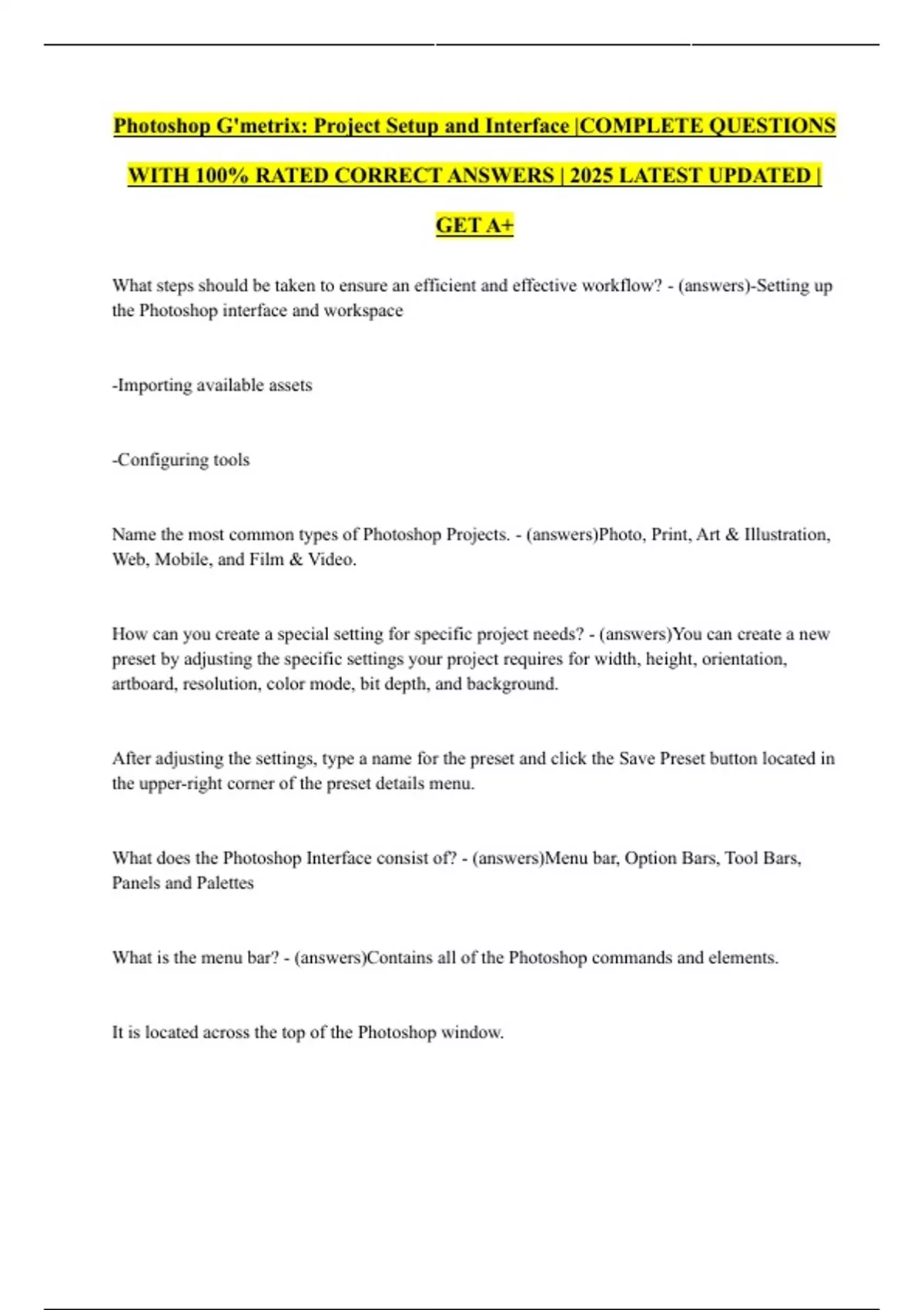 Photoshop G'metrix: Project Setup and Interface |COMPLETE QUESTIONS