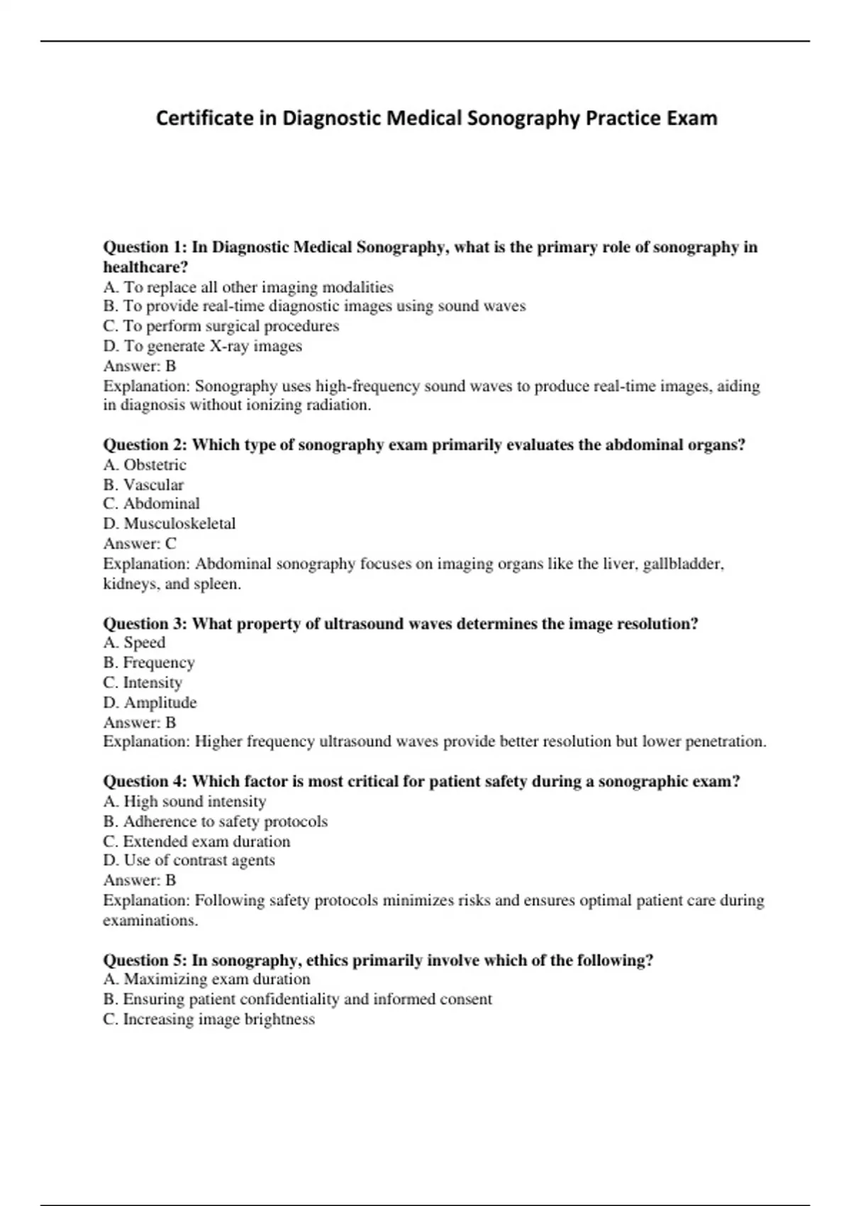 Question 1: In Diagnostic Medical Sonography, what is the primary role of sonography in