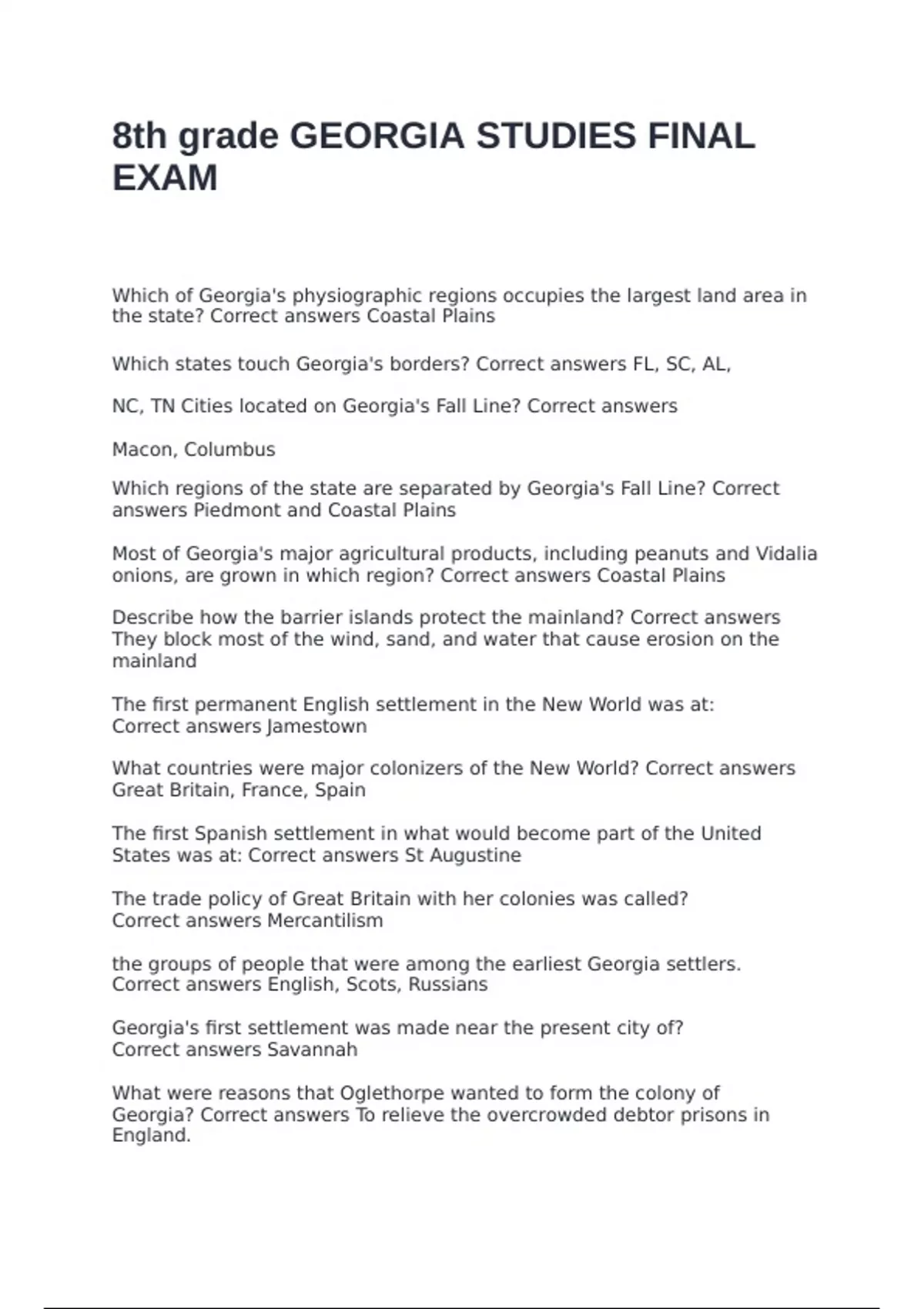 Correct answers Savannah