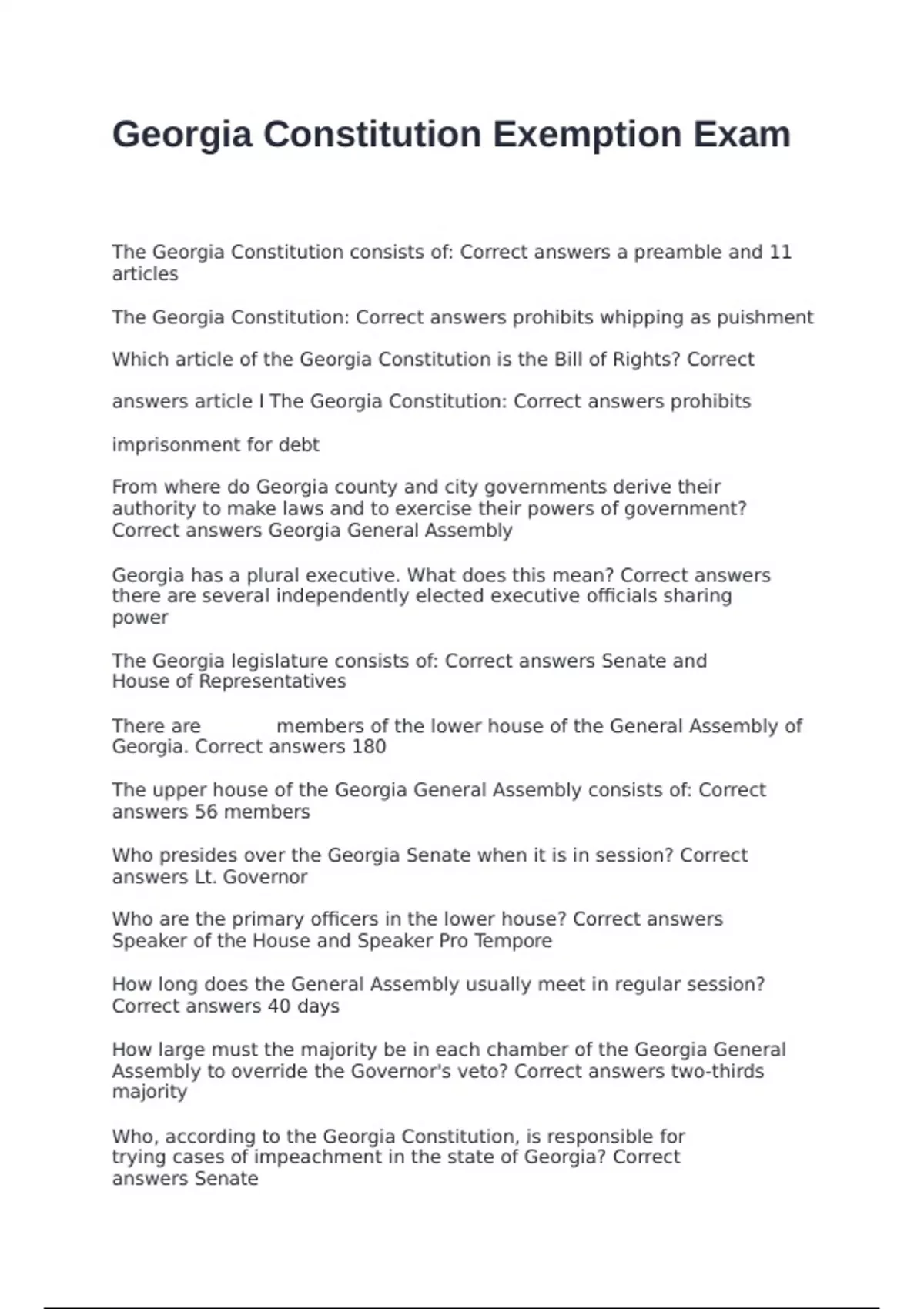 The Georgia Constitution consists of: Correct answers a preamble and 11