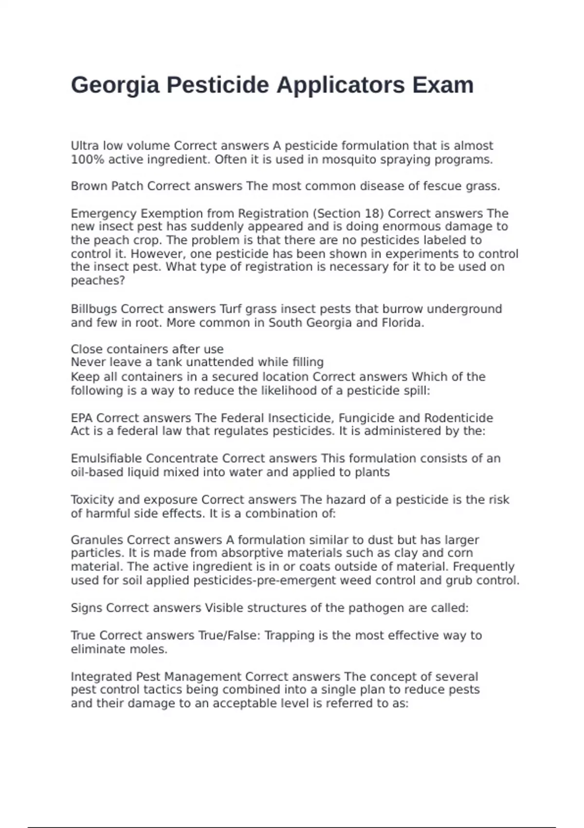 Ultra low volume Correct answers A pesticide formulation that is almost