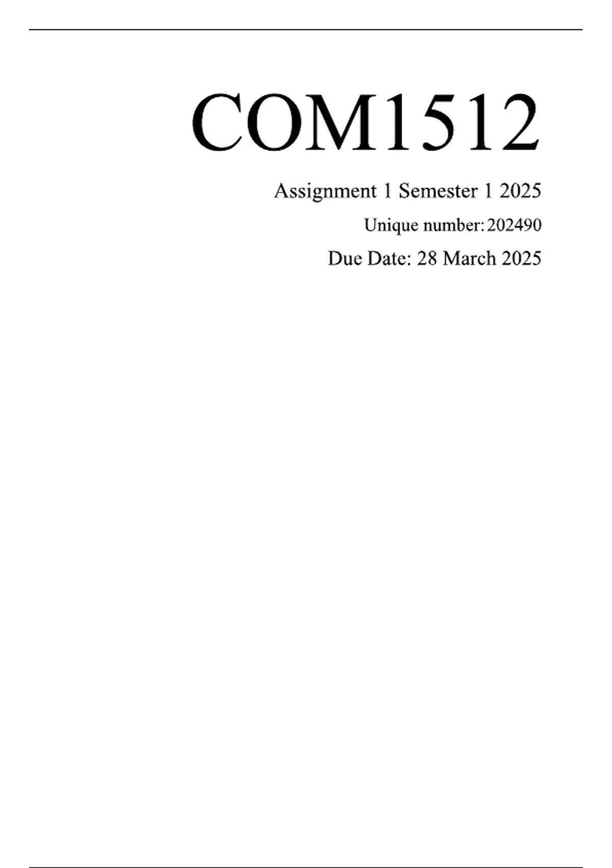 COM1512 Assignment 1 (COMPLETE ANSWERS) Semester 1 2025 (202490) - DUE 28 March 2025