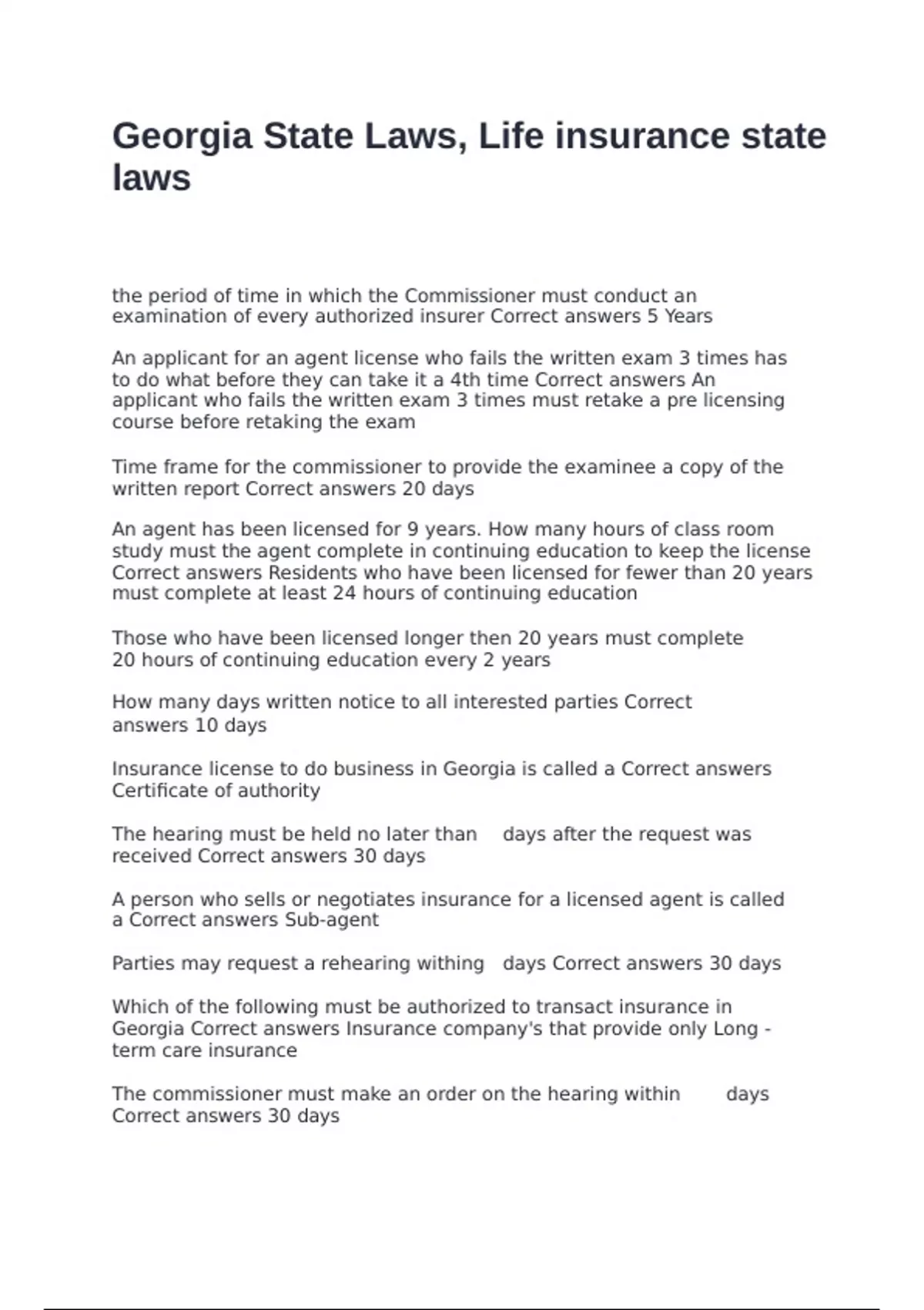 the Georgia licensing exam? Correct answers 20 Hours Life