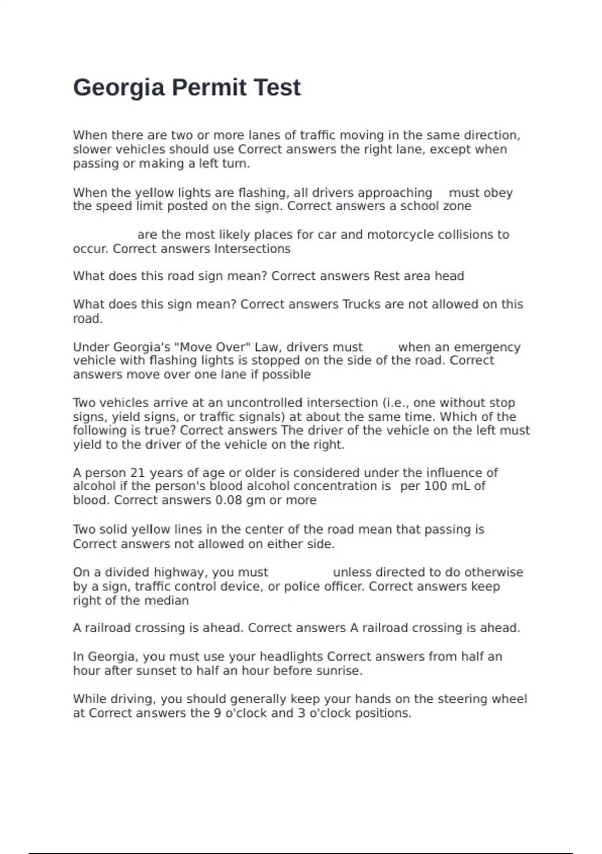 by a sign, traffic control device, or police officer. Correct answers keep