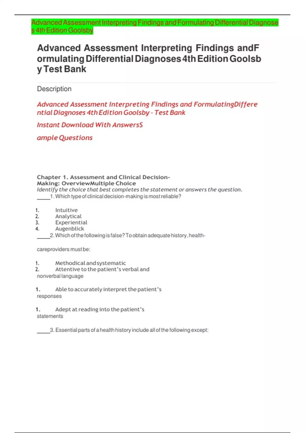 ntial Diagnoses 4th Edition Goolsby – Test Bank