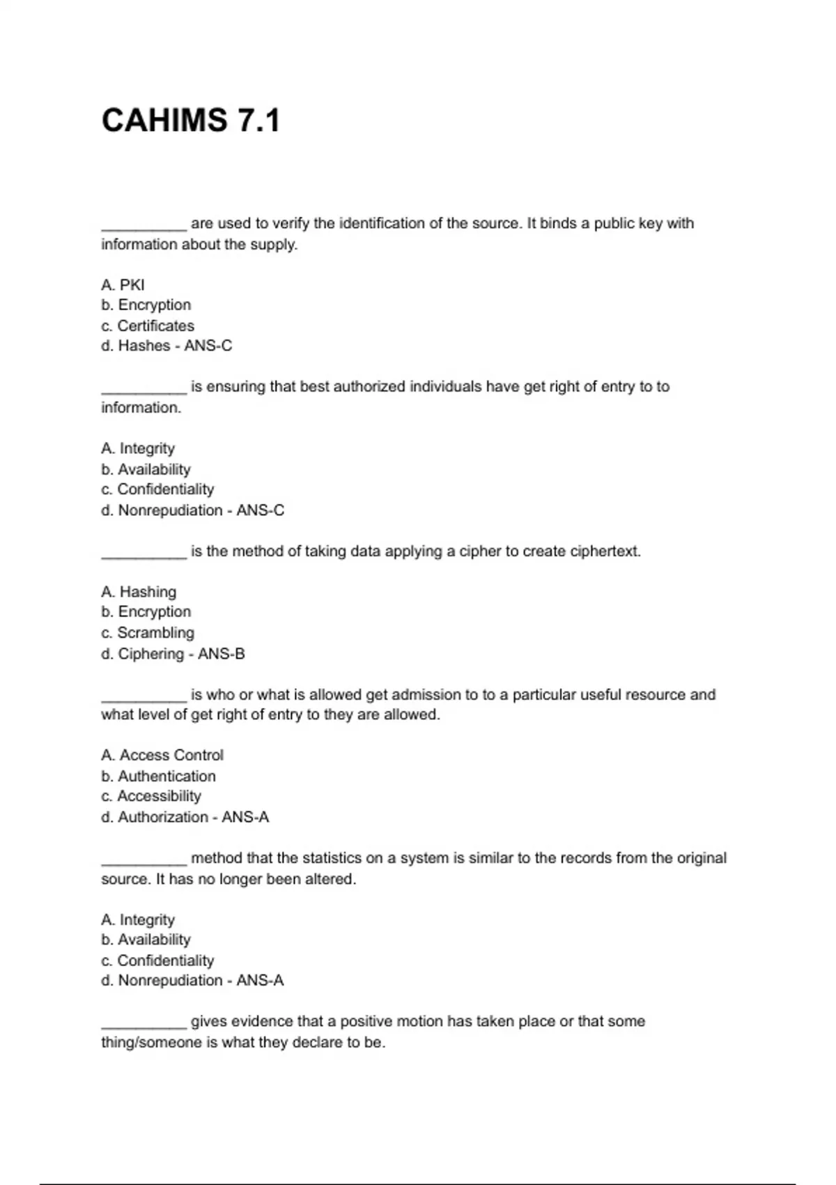 d. Authorization - ANS-A