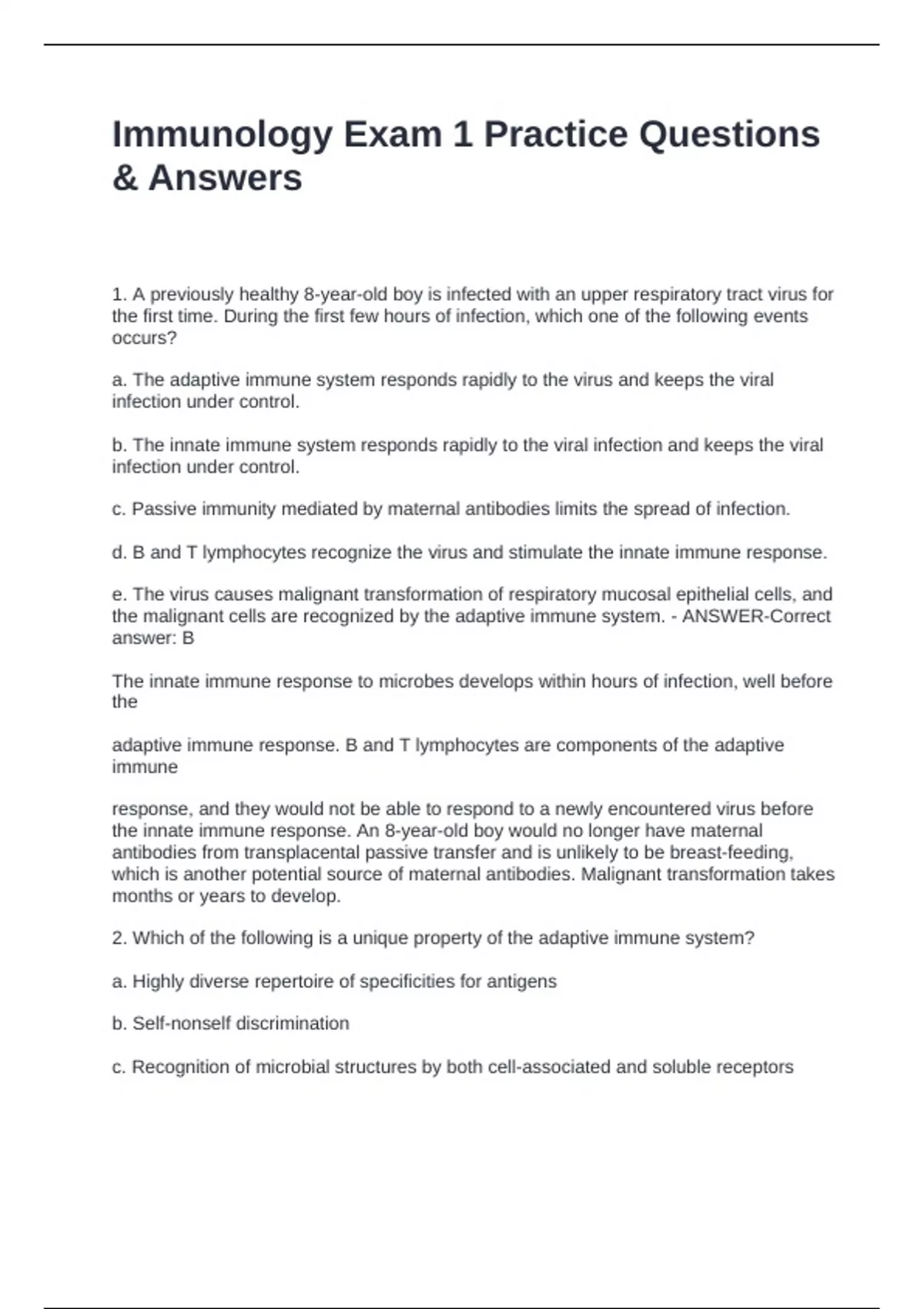 1. A previously healthy 8-year-old boy is infected with an upper respiratory tract virus for