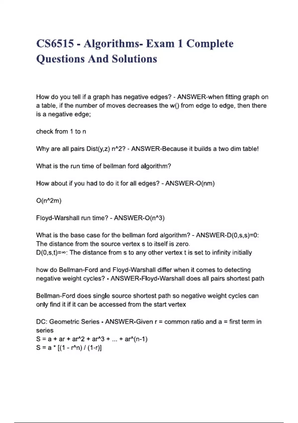 CS6515 - Algorithms- Exam 1 Complete Questions And Solutions