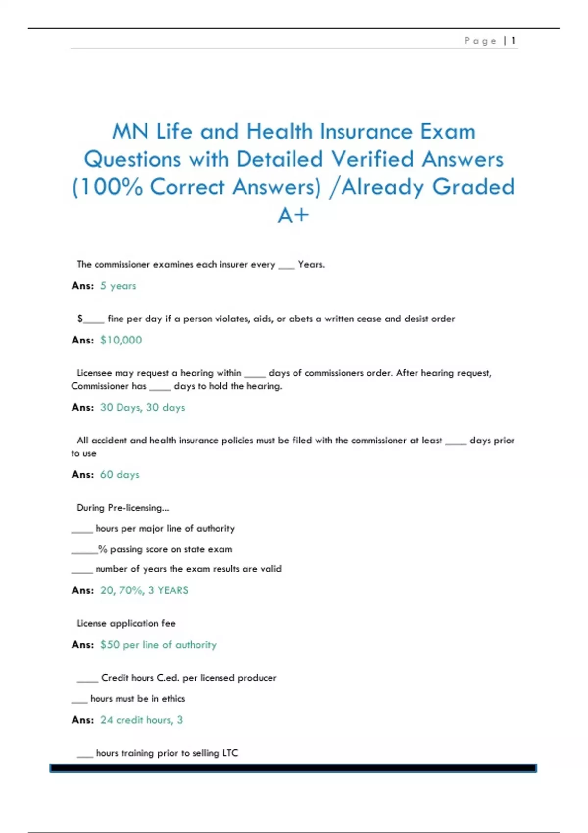 MN Life and Health Insurance Exam Questions with Detailed Verified Answers (100% Correct Answers) /Already Graded A+
