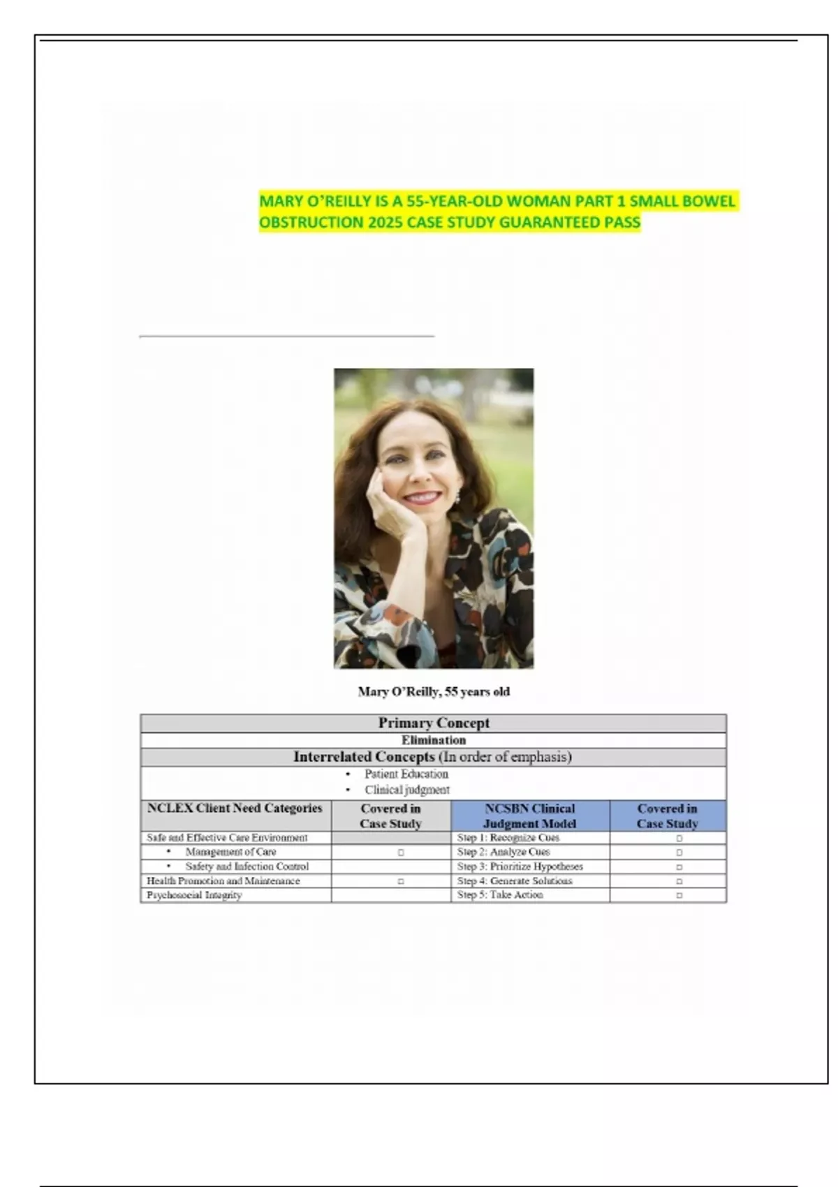 MARY O’REILLY IS A 55-YEAR-OLD WOMAN PART 1 SMALL BOWEL OBSTRUCTION 2025 CASE STUDY GUARANTEED PASS