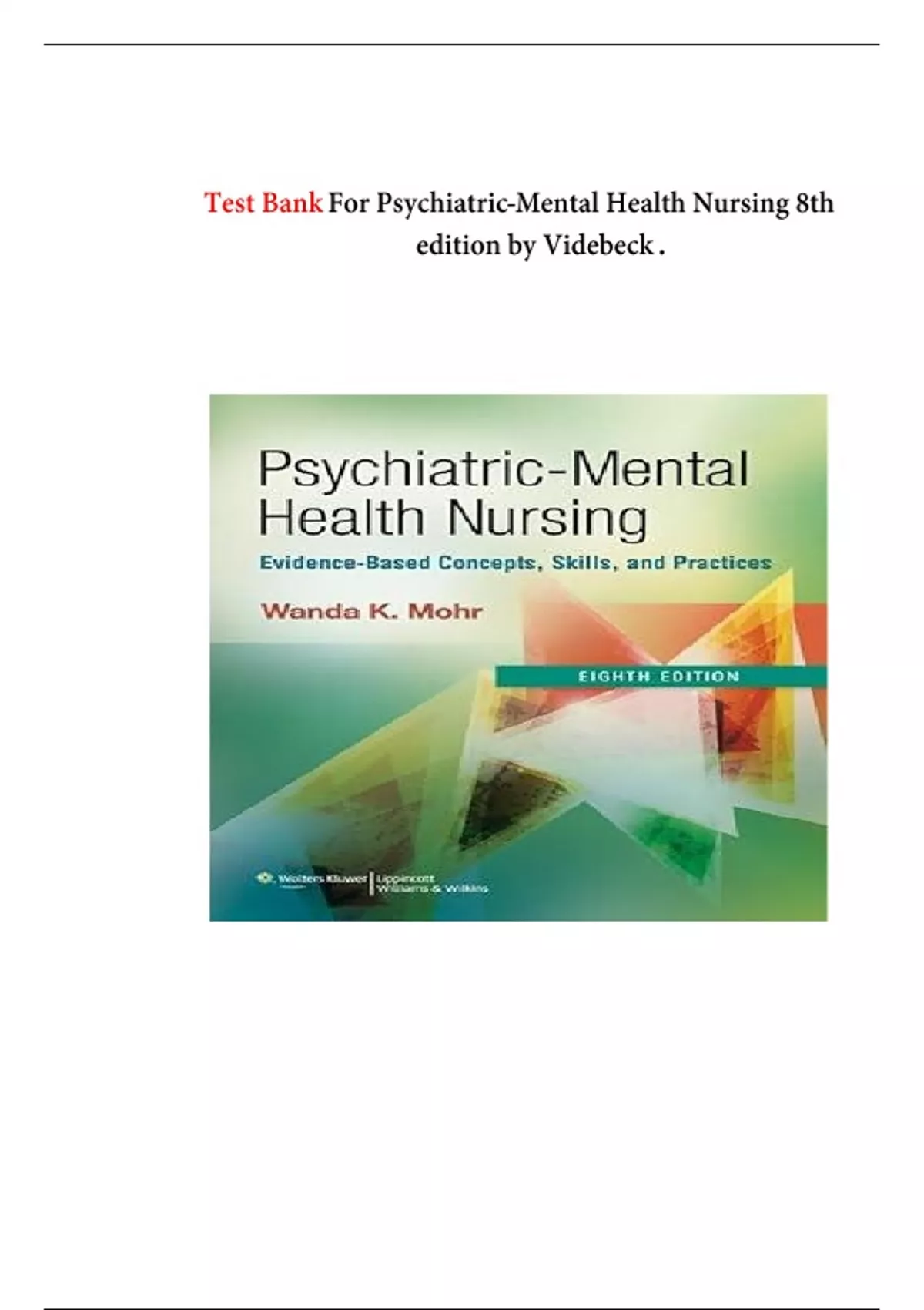 Test Bank For Psychiatric-Mental Health Nursing 8th edition by Videbeck .